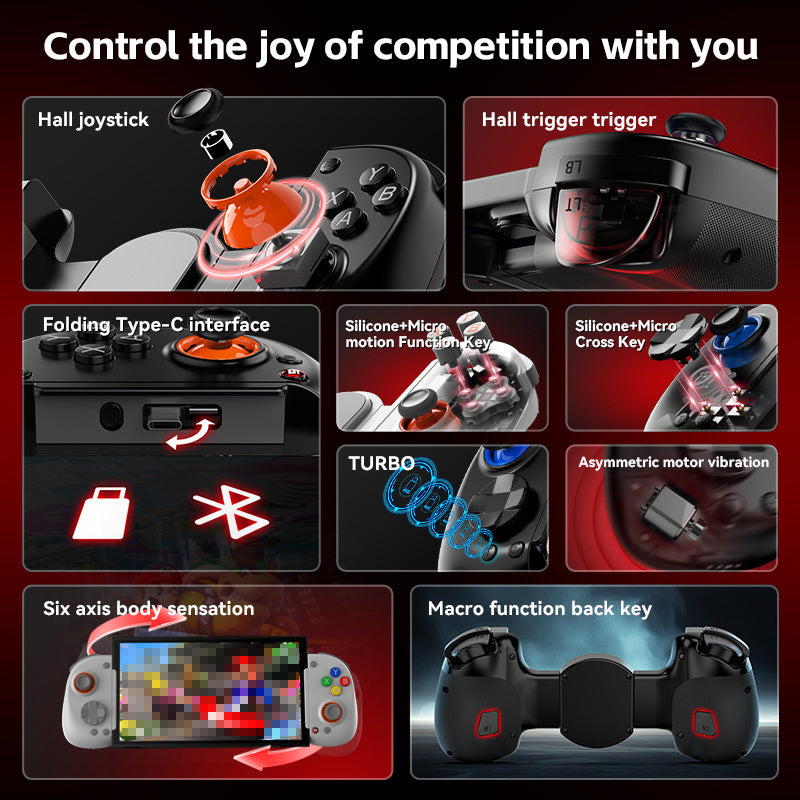 1. Hall Joystick and Trigger System: Advanced precision control with non-drifting technology and tactile feedback for responsive gameplay.