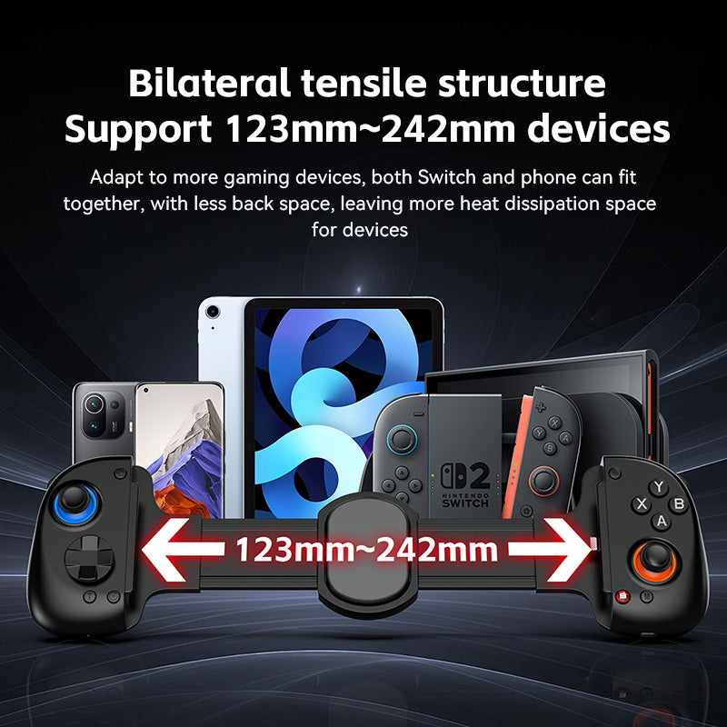 6. Extendable Size: Bilateral tensile structure supports devices with sizes between 123mm and 242mm, ensuring compatibility with various devices.